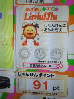今日5月15日の2回目(7:50頃)のめざましじゃんけんが
