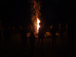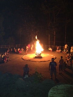 夜にはキャンプファイヤー